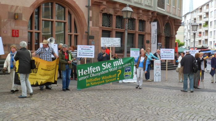 Diesen Termin nutzten die Bürgerinitiativen aus Biebergemünd, Linsengericht, Bad Orb und Lohrhaupten, um vor dem Römer ihrem Unmut über das Vorgehen der Mandatsträger Ausdruck zu verleihen. Willkommene Unterstützung erhielten sie durch Initiativen aus dem Taunus und Odenwald. Die Bürgerinitiativen forderten auf ihrer Kundgebung die politischen Vertreter auf, die Sorgen und Ängste der Bürger ernst zu nehmen und ihnen ein Mitspracherecht einzuräumen.