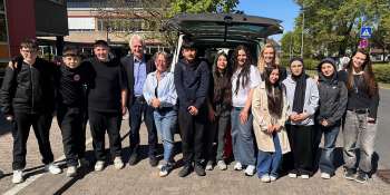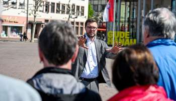 Damit hatten sie nicht gerechnet: 13 Schülerinnen und Schüler eines Kinderkunstprojekts trafen bei einer Ortsbegehung am Untermarkt in Gelnhausen zufällig auf Bürgermeister Christian Litzinger (CDU).
