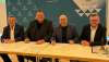 Innenminister Roman Poseck gemeinsam mit Bernd Neumann, Präsident des Hessischen Landesamtes für Verfassungsschutz, Anika Schleinzer, Leiterin der Phänomenbereichsübergreifenden wissenschaftlichen Analysestelle Antisemitismus und Fremdenfeindlichkeit (PAAF) sowie Daniel Neumann, Vorsitzender des Landesverbandes der Jüdischen Gemeinden in Hessen. BILDQUELLE: Frank Zinn / HMdI
