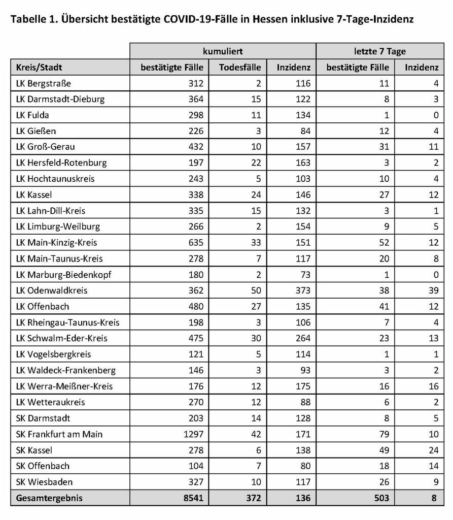 Am Montag wurden in Hessen zwei weitere Todesfälle im Zusammenhang mit Covid-19 gemeldet.