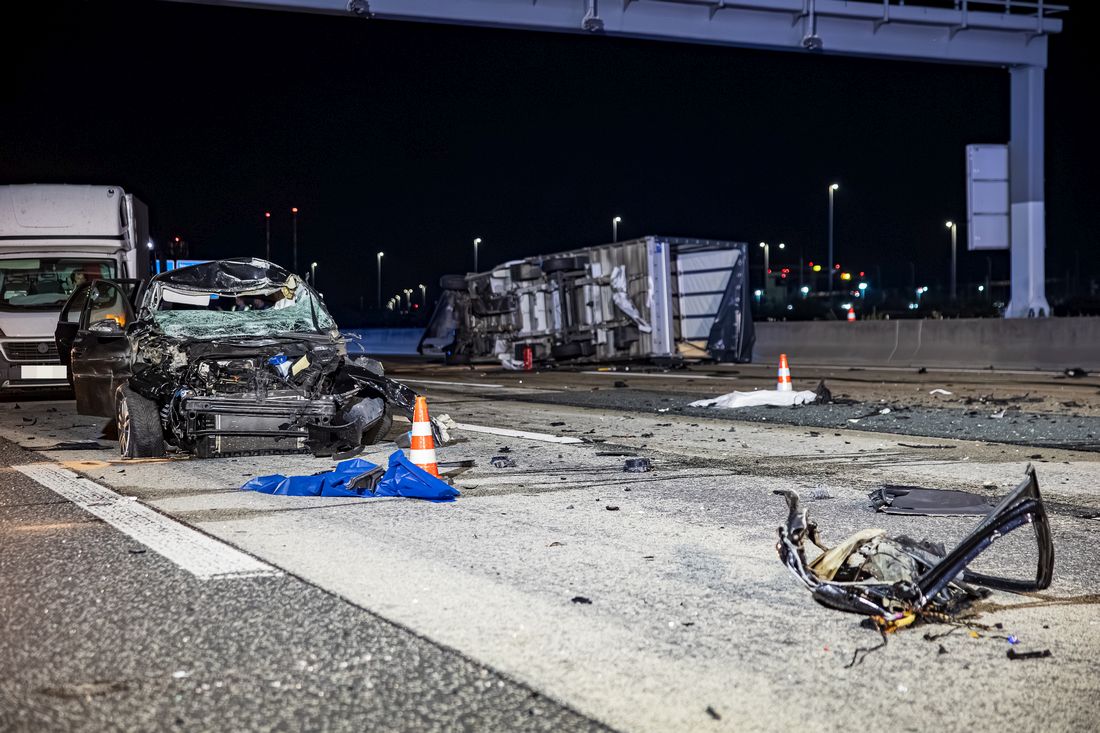 In der Nacht zu Freitag kam es auf der A5 zwischen der Anschlussstelle Zeppelinheim und dem Frankfurter Kreuz in Fahrtrichtung Norden zu einem folgenschweren Verkehrsunfall. Nach Informationen des Einsatzleiters der Feuerwehr Frankfurt kollidierten zunächst ein VW Golf und ein Transporter mit Kofferaufbau. Durch den Aufprall drehte sich der Transporter und kam seitlich auf der linken Spur zum Liegen, während der Golf auf der rechten Spur zum Stehen kam.