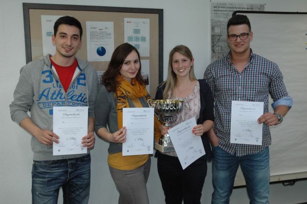Foto: Stolz präsentierten die Azubis der Firma PICARD Lederwaren GmbH & Co. KG ihre Siegerurkunden (von links) Lirim Veliu, Janett Lorenz, Nadine Heck, Enrico Li Fonti.