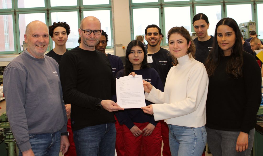 „Mit SchulePlus erhalten Jugendliche die Möglichkeit zu einem freiwilligen, regelmäßigen sowie nachhaltigen und kontinuierlichen Praktikumsmodell“, so Matthias Derzbach, Head of Training Centre Manroland Sheetfed GmbH. „Wir sind stolz darauf, gemeinsam mit Schülerinnen und Schülern der Mathildenschule und mit der Unterstützung von SchuleWirtschaft Osthessen als Erste in Offenbach mit diesem wertvollen Projekt zu beginnen.” Am 20.01.2025 kamen die beteiligten Akteurinnen und Akteure zu einem Besuchstermin bei Manroland zusammen und nutzen die Gelegenheit zum Austausch über Aktuelles zum SchulePlus-Programm. „Ich kann mich Herrn Derzbach nur anschließen. Als wir von dem Konzept gehört haben, waren wir, Eltern und vor allem die Schülerinnen und Schüler begeistert. Ich bin sicher, dass die Jugendlichen wertvolle Erfahrungen sammeln und sich entscheidendes theoretisches und praktisches Wissen fürs Leben aneignen werden“, sagte Judith Zytar, Koordinatorin für BSO/OloV & MINT an der Mathildenschule in Offenbach.