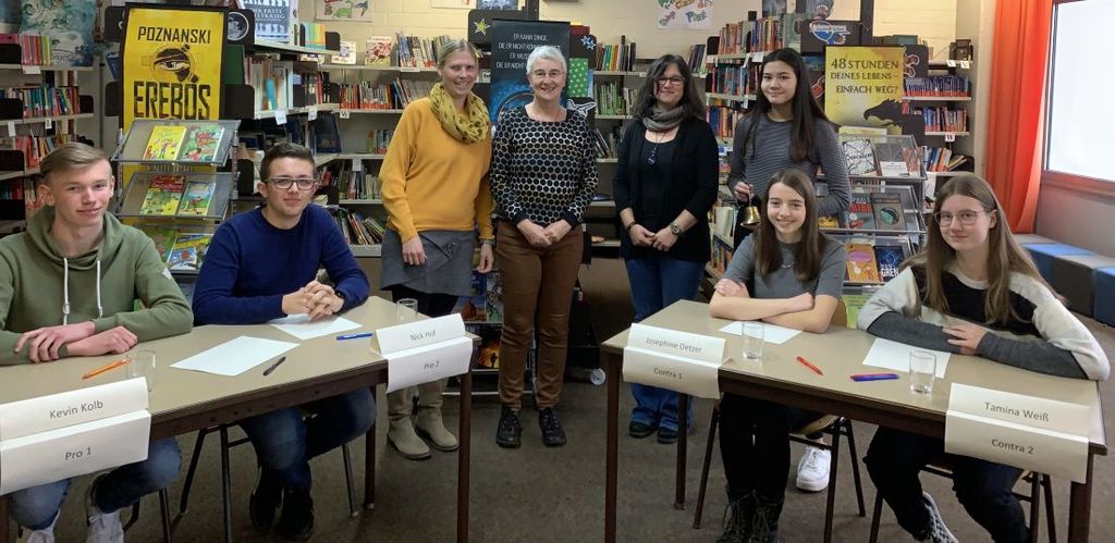 Während der Debatte zeigte sich recht schnell, dass Josephine Detzer in allen zu bewertenden Bereichen überzeugen konnte und so entschied sie den Wettbewerb deutlich für sich. Sowohl in Sachkenntnis und Ausdrucksvermögen konnte sie überzeugen, als aber auch vor allem in ihrer Gesprächsfähigkeit, die ihre Überzeugungskraft nur noch unterstrich. Daher wird sie im kommenden Frühjahr für die Henry-Harnischfeger-Schule gemeinsam mit dem zweitplatzierten Kevin Kolb beim Schulverbundsentscheid antreten. Tamina Weiß erreichte Platz 3, dicht gefolgt von Nick Hof auf Platz 4. „Wir danken allen für die Teilnahme, den Lehrkräften für die Vorbereitung und wünschen für den weiteren Wettbewerb alles Gute.“, so Andrea Auth abschließend.