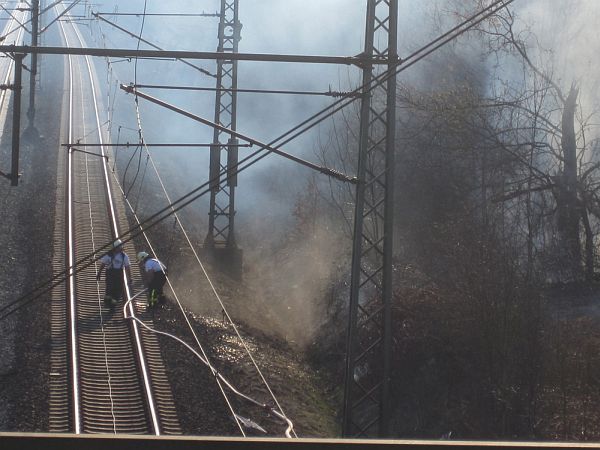 Ein Flächenbrand an den Bahngleisen hat heute für zahlreiche Verspätungen und Zugausfälle auf der Bahnstrecke Frankfurt - Fulda gesorgt. Gegen 13.30 Uhr wurde Feuer im Waldgebiet zwischen Rodenbach und Hanau-Wolfgang gemeldet, dass sich relativ schnell ausbreitete. Über 100 Feuerwehrleute kämpften gegen die Brände an, die sich auf eine Strecke von sechs Kilometern verteilten.