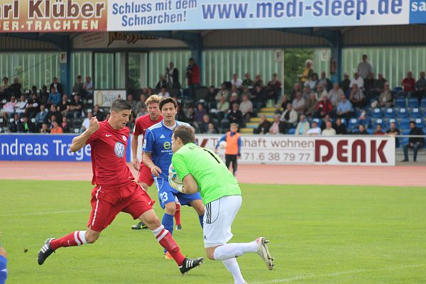 In der Pause wechseln die Hausherren erneut, mit Topic kommt ein neuer Stürmer. Und der ist gleich brandgefährlich: In der 50. Minute kann Kassels Schlussmann Nulle in letzter Sekunde klären, Sekunden später geht ein Kopfball von Topic knapp am Tor vorbei. Warum dieser Stürmer bislang immer nur auf der Bank sitzt, fragt sich da nicht nur mancher Zuschauer.