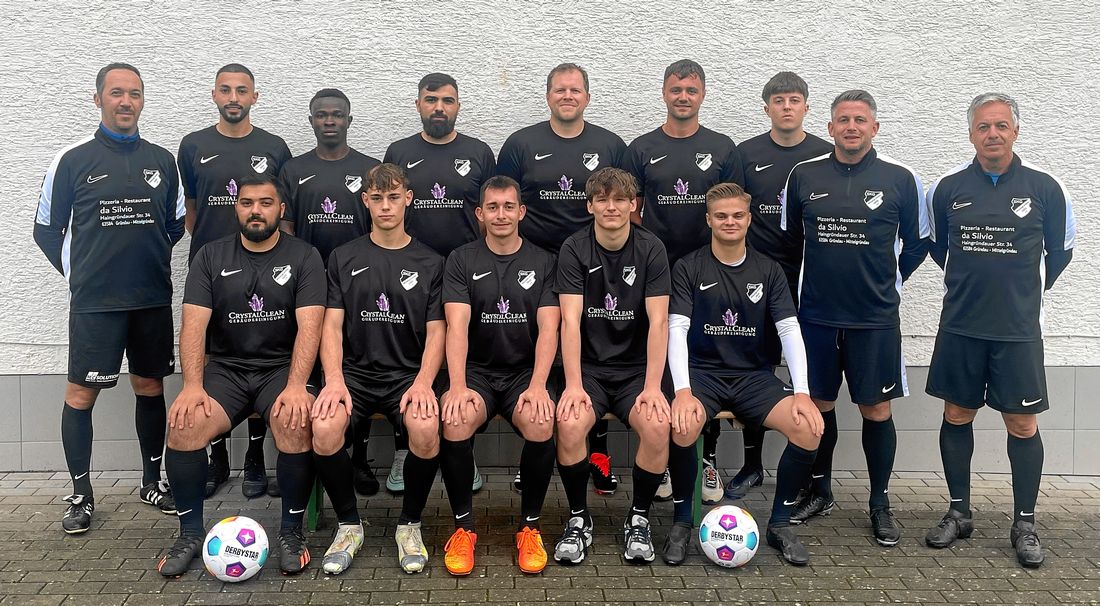 Die Neuzugänge der SKG Mittelgründau (von links): hintere Reihe Giuseppe „Pino“ Prestifilippo (Co-Trainer 1. Mannschaft), Hmayak Nazaryan, Bashar Mohamed Abubakari Dauda,  Rasit Ayrangöl, Timo Springer, Cornel Rarancena, Mateusz Mielek (eigene Jugend), Lars Kuhn (Trainer 1. Mannschaft), Andreas Jakob (Trainer 2. Mannschaft), vordere Reihe Ibo Ayrangöl, Jannik Dressbach, Louis Jakob, Julian Stenzel (eigene Jugend), Leandro Kämmer.