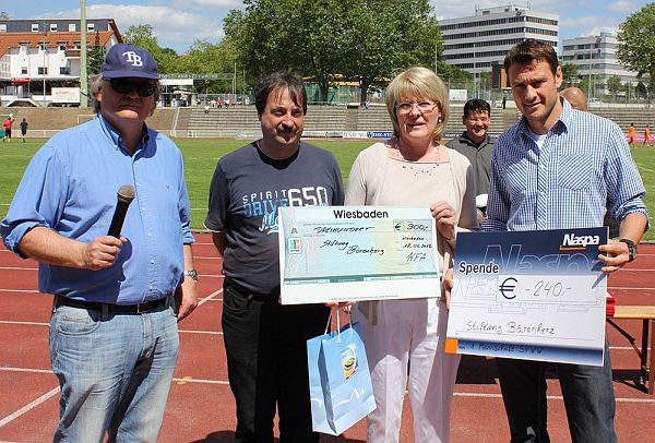 Beim 4:0 (1:0)-Erfolg der Rot-Schwarzen gegen eine Wiesbadener Auswahl von Verbandsliga- und Gruppenligaspielern kam ein Teil des Erlöses der Stiftung Bärenherz zu Gute. Die Mannschaft von Trainer Peter Vollmann spendete 240,- Euro.