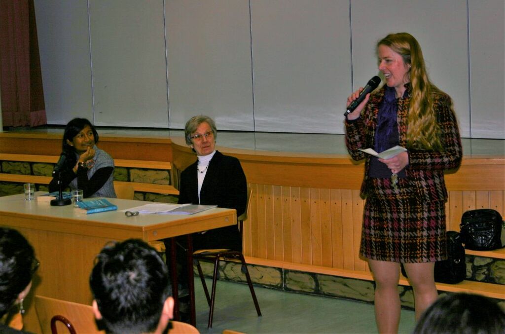 Angesprochen auf den Titel ihres Werks antwortete sie, dass Eroberer, Einwanderer und Flüchtlinge nach Kanada immer in Booten kamen, und sie verwies historisch hierbei auf Wikinger, Franzosen, Engländer sowie die Gruppe der Flüchtlinge. Moderiert wurde die Veranstaltung von Frau Angelika Arend, einer ehemaligen Professorin der Universität Victoria. Frau Angelika Arend übersetzte den Roman auch ins Deutsche. Für alle Zuhörer wurde neben der literarischen auch die politische Bedeutung des Romans offensichtlich. Deutlich wurde im Verlauf der Veranstaltung auch, dass die pädagogische Intention einer solchen Lesung auch darin besteht, Neugierde für das Werk und seine Aussagekraft zu wecken, auch dann, wenn ein Roman nicht im Unterricht behandelt wurde.
