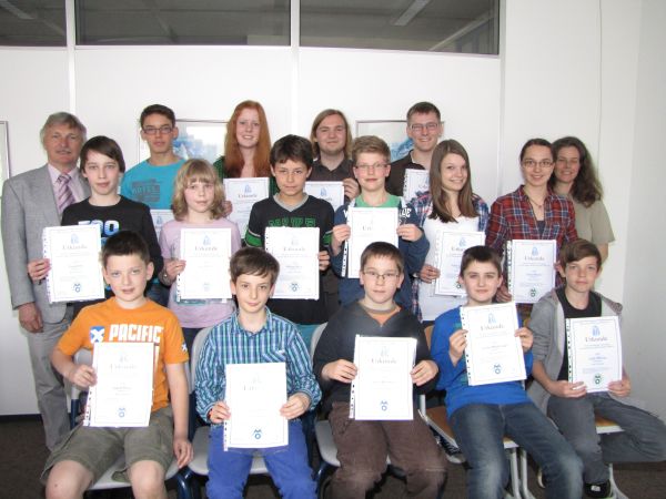 Die zwei Wettbewerbsklausuren bestanden die drei Grimmels mit Bravour. Tobias Rieger und Viktoria Metzke erreichten jeweils einen erfreulichen Mittelplatz. Teresa Kunkel gewann den Wettbewerb in ihrer Altersstufe und konnte bei der Siegerehrung neben einer Urkunde auch einen kleinen Sachpreis in Empfang nehmen.