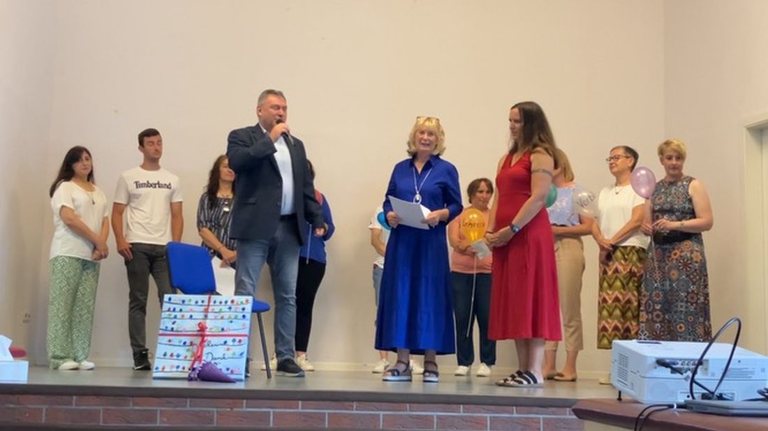 Und dann wurde mit Irene Kehr-Kinzig ein „Urgestein“ der Herzbergschule ein letztes Mal auf die Bühne gerufen. Nach einigen Jahren an der Anna-Schmidt Schule in Frankfurt und der Kinderbrücke in Wächtersbach wurde sie 1997 an die Herzbergschule Roth versetzt. Hier unterrichtete sie insgesamt 27 Jahre als Grundschullehrerin an der Herzbergschule die Fächer Deutsch, Mathe, Sachunterricht, Sport und Kunst. Nach vielen Jahren der intensiven Zusammenarbeit mit der Schulleitung wurde sie 2018 zur Konrektorin ernannt.