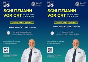 Polizeioberkommissar Thomas Walther, Schutzmann vor Ort der Polizeistation in Schlüchtern, bietet im Mai jeweils eine offene Bürgersprechstunde in der Gemeinde Birstein und der Gemeinde Sinntal an.