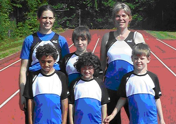 Foto: hinten Trainerin Tanja Müller, Yorik Ost, Co-Trainerin Anne Mertlich, vorne: Timothy Harding, Friederike Reichel, Sven Mertlich.