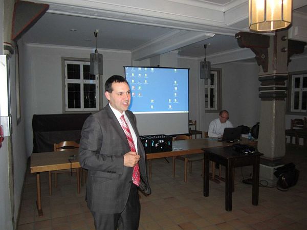 Der beauftragte Architekt, Klaus Heim, erläuterte anschließend, dass vor jeder geförderten Maßnahme eine Beratung durchgeführt wird. Das Ziel ist, die Bausubstanz in den Ortskernen zu erhalten, zu verbessern oder zu erneuern. Bei dieser Beratung werden die beabsichtigten Maßnahmen, bauliche Anforderungen sowie die Fördermodalitäten besprochen. Klaus Heim schreibt ein Protokoll dieser Beratung und kann kleinere Skizzen und Planungen für den Bauherrn anfertigen. Diese Leistung wird durch die Kommune sowie das Land Hessen finanziert und ist für Privatpersonen kostenlos. Als private Förderprojekte kommen Investitionen zur Sanierung von Gebäuden wie Dacheindeckung, Fassadenerneuerung, Erneuerung von Fenstern und Türen, Wärmedämmung in Betracht. Auch Baumaßnahmen zur Umnutzung und Erweiterung von Gebäuden und sogar Neubauten im alten Ortskern können gefördert werden, falls sie sich baugestalterisch in die vorhandene Struktur einfügen. Für alle Maßnahmen gilt, dass vor Erhalt einer schriftlichen Bewilligung des Zuschusses nicht mit der Maßnahme begonnen werden darf; ebenso dürfen vorher keine Aufträge an Firmen vergeben oder Material gekauft werden. Klaus Heim verdeutlichte die Möglichkeiten der Dorferneuerung für private Hausbesitzer an einigen Bildern aus anderen Maßnahmen im Main-Kinzig-Kreis.