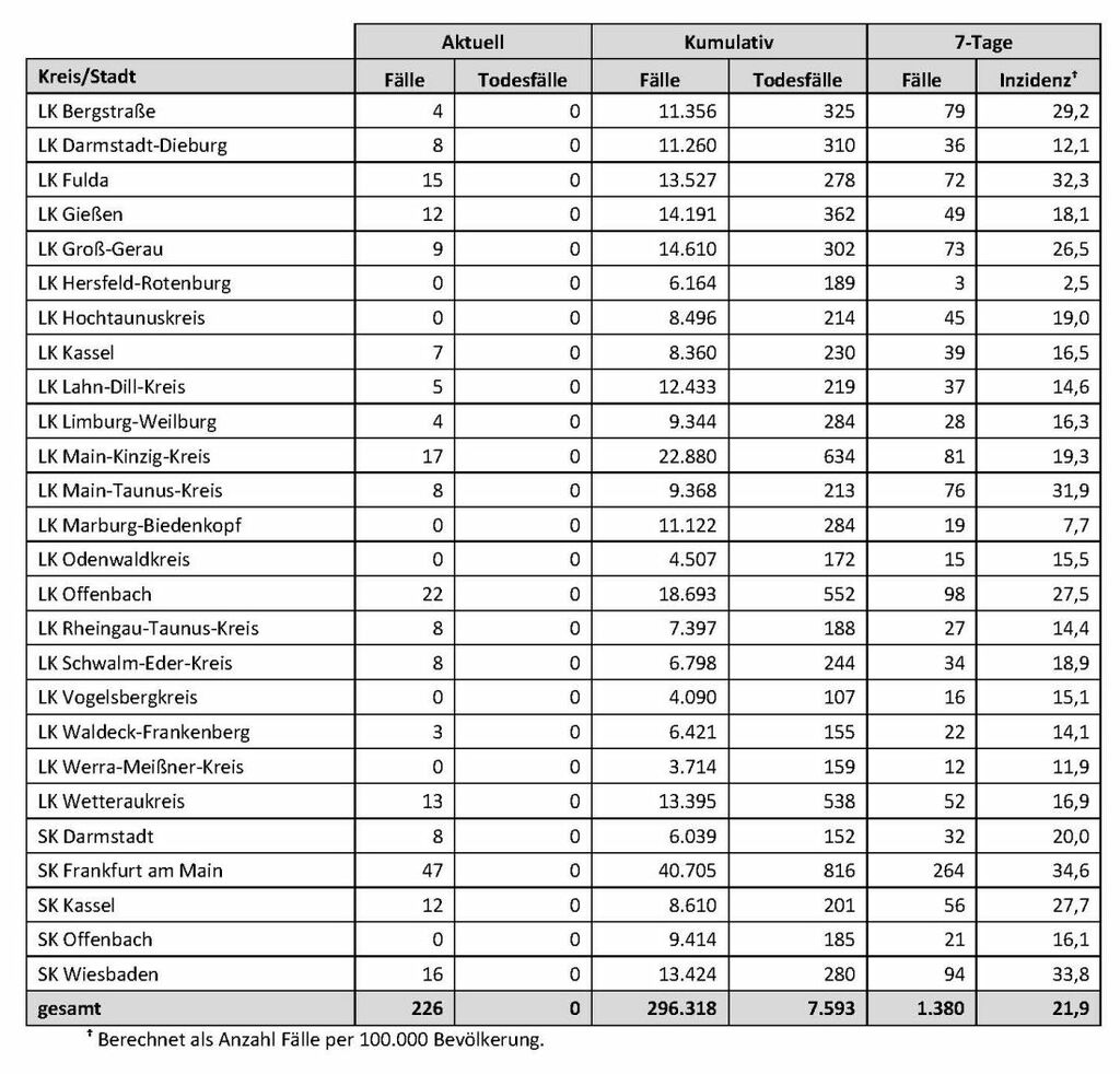 Sonntag: Kein Corona-Todesfall und 226 Neuinfektionen in Hessen