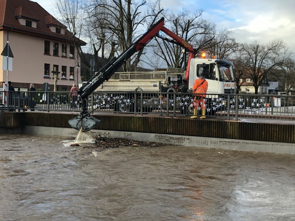 Als Flaschenhals hat sich wieder Gelnhausen erwiesen, Burgbrücke und das Pumpwerk in der Burgstraße hielten allerdings den Wassermassen stand. In der Nacht wurde der Höchststand mit 4,54 Metern gemessen. Kritisch wurde es, als das Wasser kurzzeitig ins Ziegelhaus drückte, aber auch hier konnten laut Bürgermeister Daniel Glöckner (FDP) größere Schäden vermieden werden. Hinter Gelnhausen verteilte sich das Wasser dann wie erwartet auf einer größeren Fläche, dennoch waren auch in Langenselbold die Einsatzkräfte in Alarmbereitschaft. Bürgermeister Timo Greuel (SPD) meldet am Samstagmorgen, dass durch die neuen Rückhaltebecken größere Überflutungen verhindert werden konnten. Die Gründau trat aber dennoch über die Ufer, am Marktplatz, Steinweg, Uferstraße und Wassergasse standen mehrere Keller unter Wasser.