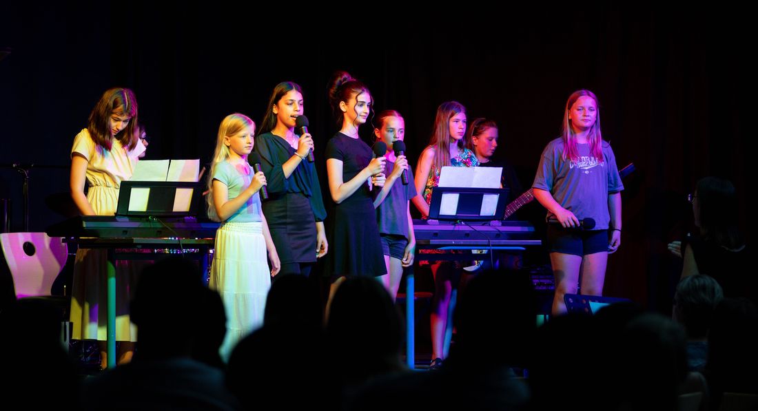 Aufgrund der großen Nachfrage und der Überfüllung in den vergangenen Jahren wurde das Konzert in diesem Jahr erstmals an zwei aufeinanderfolgenden Abenden präsentiert. Diese Entscheidung ermöglichte es mehr Zuschauerinnen und Zuschauern, die musikalischen Darbietungen zu genießen und sorgte für eine angenehmere Atmosphäre. Von Pop über Rock bis hin zu Klassikern der Musikgeschichte war für jeden Geschmack etwas dabei. Den Auftakt machte der Wahlunterrichtskurs Ensemblespiel der Jahrgangsstufe 9 mit einer gefühlvollen Interpretation von Tate McRaes "That Way". Anschließend begeisterte die gleiche Gruppe das Publikum mit ihrer Version des One Republic-Hits "Counting Stars".