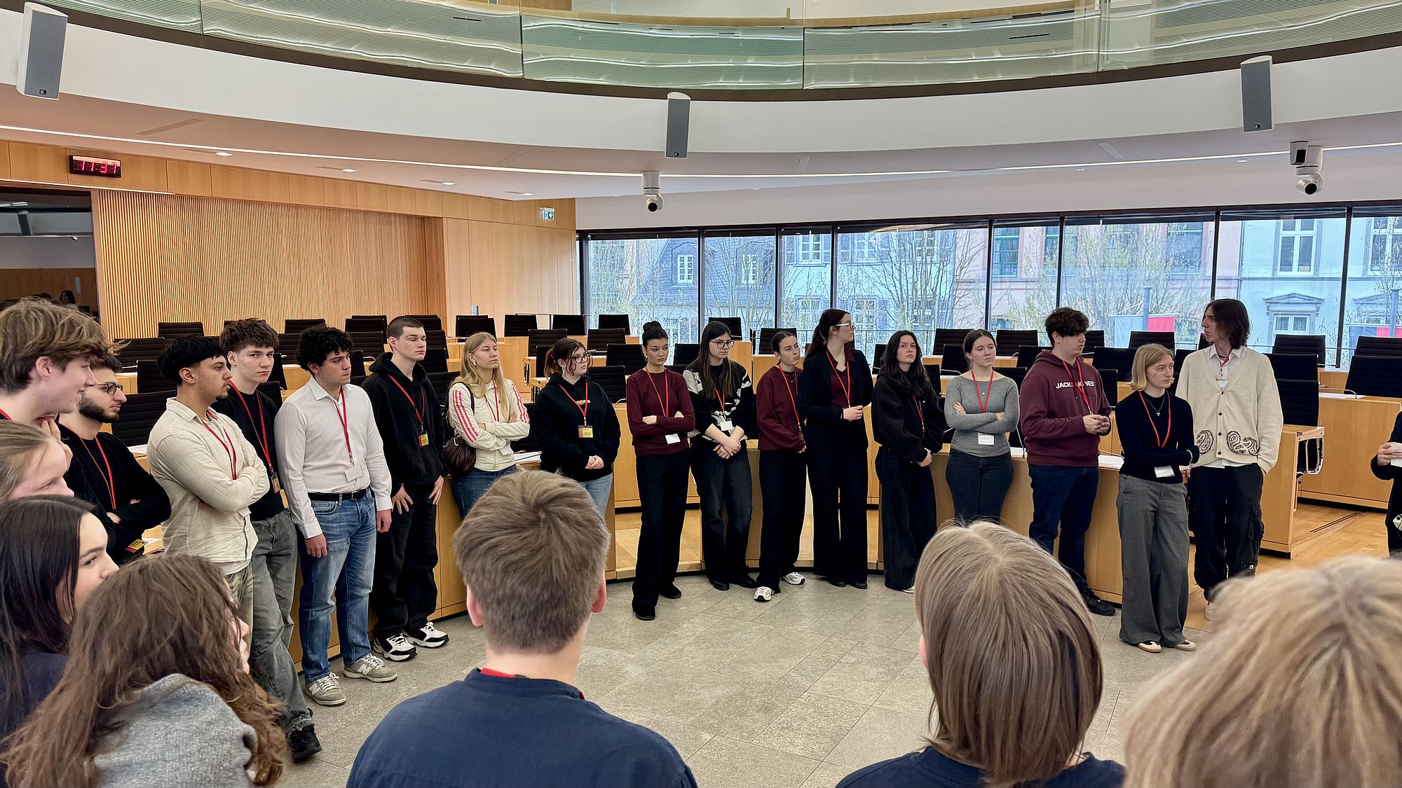 Anlässlich des 50-jährigen Schuljubiläums nahm die Gruppe am Seminar „Im Zentrum der Landespolitik“ teil – und bekam dabei einen seltenen, intensiven Einblick in parlamentarische Abläufe. Statt trockener Theorie erlebten die Jugendlichen politische Debatten direkt im Plenarsaal und konnten verfolgen, wie Entscheidungen vorbereitet und ausgetragen werden. Besonders prägend waren die Gespräche mit Landtagsabgeordneten. Hier bot sich die Gelegenheit, politische Positionen nicht nur zu hören, sondern kritisch zu hinterfragen. Auch die „Aktuelle Stunde“ im Parlament zeigte eindrucksvoll, wie kontrovers und zugespitzt politische Auseinandersetzungen geführt werden.
