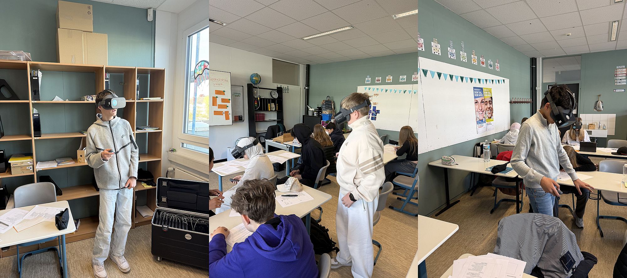 Im Anschluss arbeiteten die Schülerinnen und Schüler in einer abwechslungsreichen Stationsarbeit. Herzstück war der Einsatz moderner VR-Technologie: Mit speziellen VR-Brillen konnten sie realitätsnahe 360°-Betriebserkundungen erleben und verschiedene Ausbildungsberufe aus der Ich-Perspektive kennenlernen. Ergänzend dazu nutzten sie Tablets, um über die Plattform „BerUFO“ Erklärvideos und weitere digitale Inhalte abzurufen.