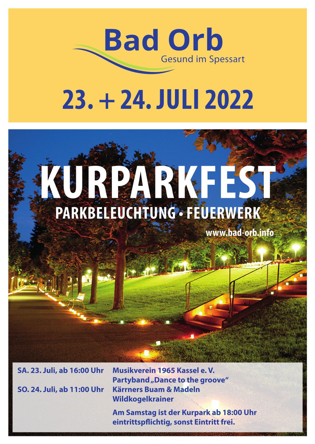 Der Bad Orber Kurpark ist am 23. und 24. Juli 2022 wieder Anziehungspunkt für Gäste aus der gesamten Region. Neben der traditionellen Parkbeleuchtung am Samstagabend mit großem Feuerwerk genießen Besucher am Sonntag den ganzen Tag musikalische Unterhaltung am Musikpavillon im Bad Orber Kurpark.