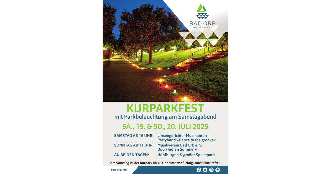 Am 19. und 20. Juli 2025 verwandelt sich der historische Kurpark in Bad Orb erneut in ein buntes Festgelände, das Gäste aus der ganzen Region anzieht. Mit bunten Lichtern und einem abwechslungsreichen Programm bietet das Kurparkfest ein Wochenende voller Spaß, Musik und kulinarischer Köstlichkeiten.