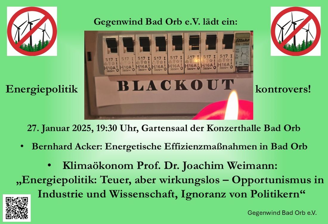 "Der Vorstand des Vereins Gegenwind Bad Orb wünscht nachträglich allen Lesern ein frohes, gesundes und friedliches Jahr 2025. Gleichzeitig laden wir zu einem Vortragsthema ein, welches wie kaum ein anderes immer noch moralisch aufgeladen ist und sich am wünschbaren und nicht am machbaren orientiert", heißt es in einer Pressemitteilung.