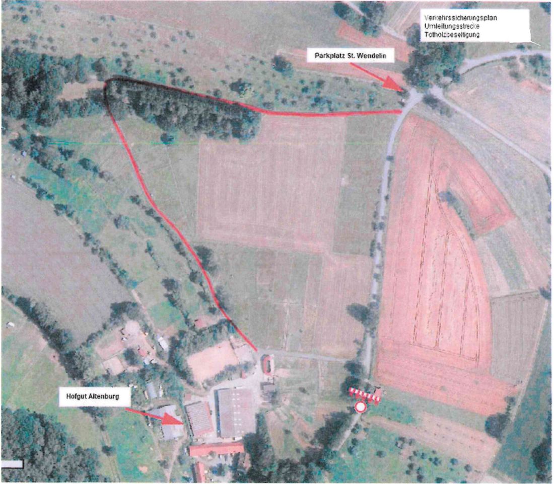 Die Zufahrt zum Hofgut Altenburg ist aufgrund von Arbeiten zur Beseitigung von Totholz für den Zeitraum von Freitag, 24. Januar, bis Samstag, 25. Januar 2025, beeinträchtigt.