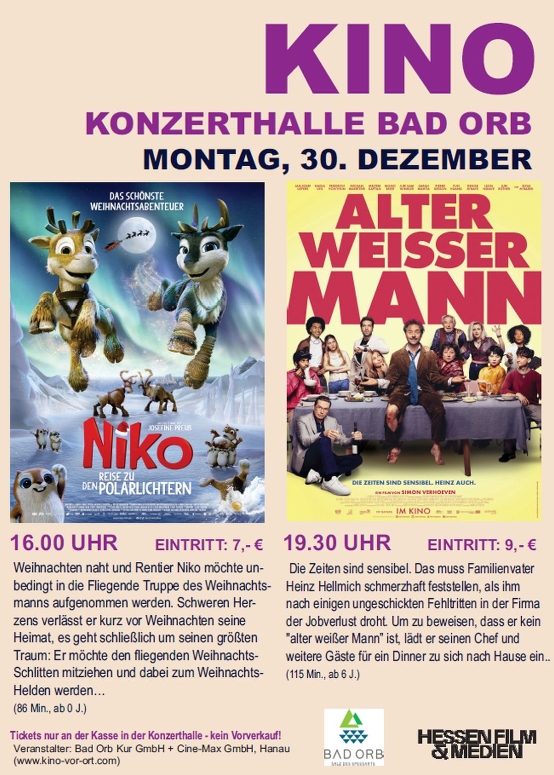 Die Konzerthalle Bad Orb lädt am 30. Dezember 2024 zu einem abwechslungsreichen Kinotag ein, der Jung und Alt begeistern wird.
