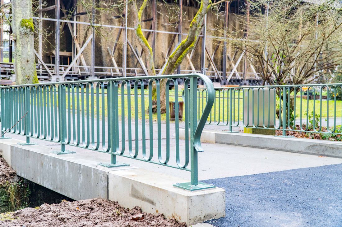 Die Instandsetzungsarbeiten an der Brücke im Kurpark sind erfolgreich abgeschlossen: Nach der Montage des neuen Brückenelements und der Restaurierung des historischen Geländers präsentiert sich die Brücke in ihrer ganzen Pracht.