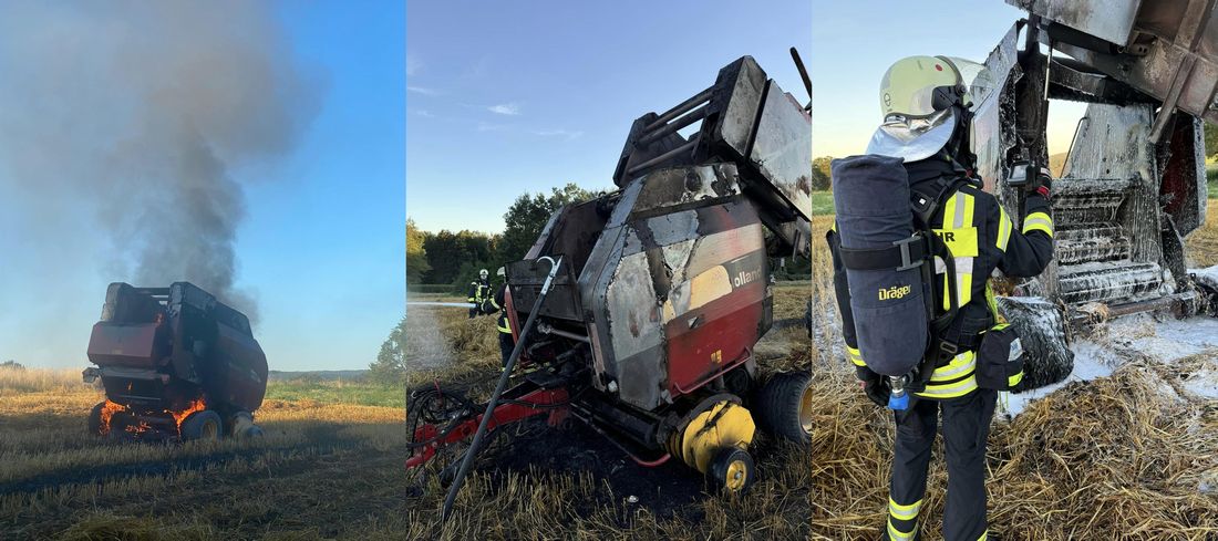 Am Samstagabend um 19:20 Uhr wurde die Freiwllige Feuerwehr Bad Orb zu einem Flächenbrand alarmiert. Beim Eintreffen an der Einsatzstelle stand eine Ballenpresse in Vollbrand. Mit einem Trupp unter schwerem Atemschutz und einem C-Rohr wurde umgehend mit der Brandbekämpfung begonnen.