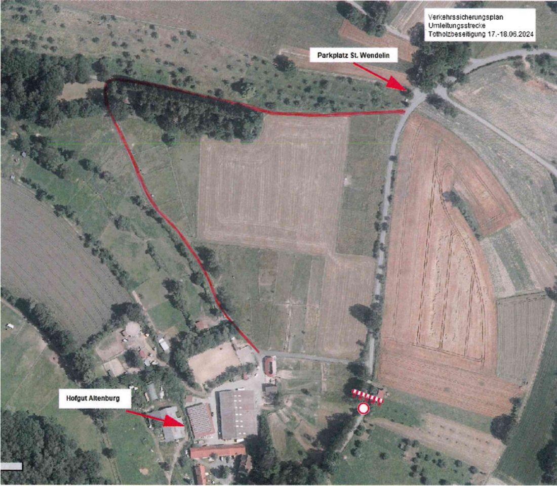 Die Zufahrt zum Hofgut Altenburg ist aufgrund von Arbeiten zur Beseitigung von Totholz für den Zeitraum von Montag, 17. Juni bis Dienstag, 18. Juni 2024 beeinträchtigt.