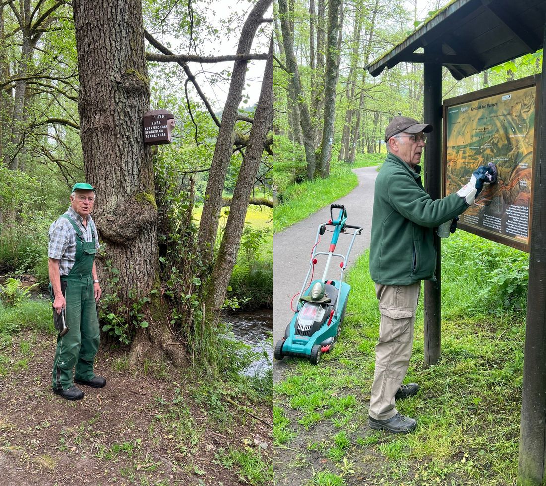 Damit es den Aktiven der Natur- und Vogelschutzgruppe (NVSG) Bad Orb auch im Wonnemonat Mai nicht an Beschäftigung mangelt, wurden die Info.-Schautafeln am Brückchenweg (Josef-Heim-Promenade) Opfer von Farb-Sprayern. Das „Mittwochs-Team,“ um und mit Bertwin Dehmer und Erich Scholz, zog aus, um zu retten, was zu retten war. Zum Glück konnten die wertvollen Info-Tafeln restlos wiederhergestellt werden.
