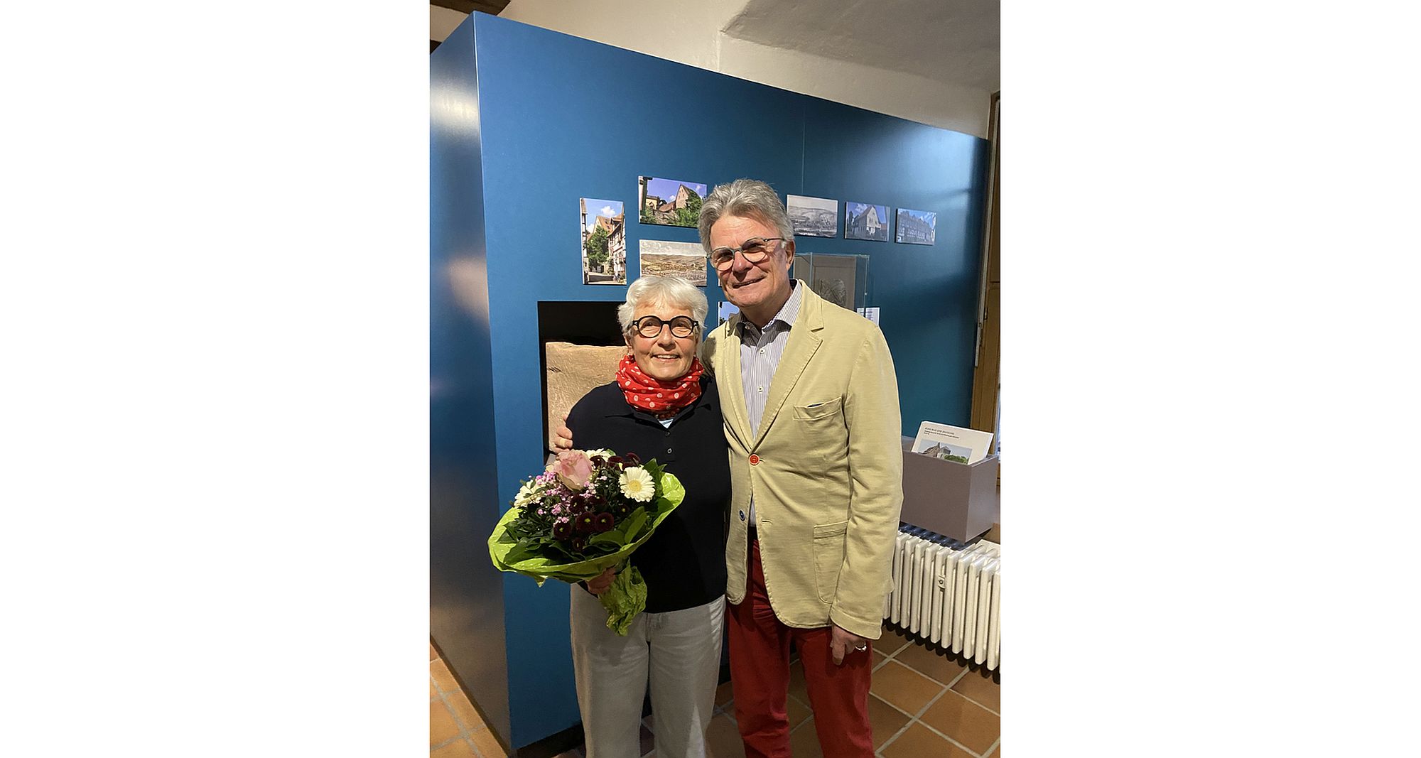 Zum Abschluss bedankte sich Werner Johanns bei Maxi Wagner für einen interessanten und kurzweiligen Abend und für einem Spaziergang durch die bald 1000jährige Geschichte der Stadt Bad Orb mit einem Blumengruß.