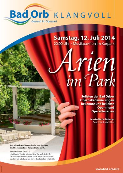 Am Samstag, 12. Juli 2014 um 20:00 Uhr, laden die Kurgesellschaft und die Opernakademie zu einem besonderen Open-Air-Konzert in den Bad Orber Kurpark ein.