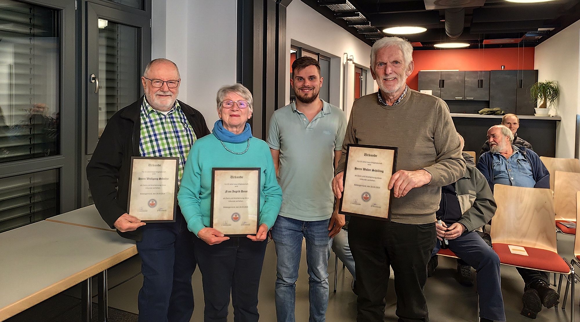 Die Jubilare (von links): Wolfgang Schultze, Ingrid Daus, Simon Beck (1. Vorsitzender), Walter Schilling.