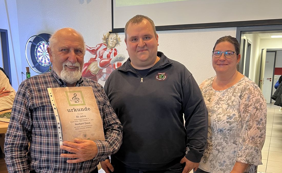 Musikverein Kassel: Norbert Daus für 50 Jahre aktive Mitgliedschaft geehrt