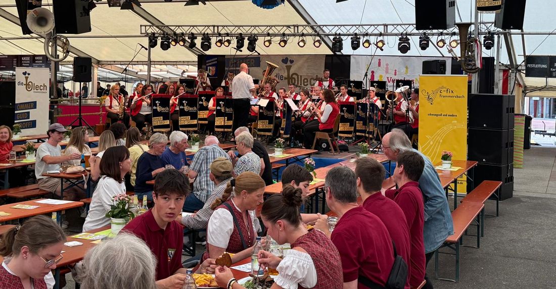Auch in diesem Jahr war der Musikverein Kassel der Einladung der Frammersbacher Musiker „Die Blech“ gefolgt und hatten am großen Fest verbunden mit dem Jubiläum des Musikvereins zur Unterhaltung aufgespielt.