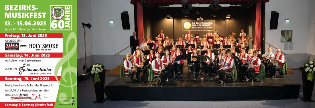 Vom 13. – 15. Juni wird im Festzelt am Sportplatz das Bezirksmusikfest zum 60-jährigen Bestehen des Musikvereins 1965 Kassel gefeiert.