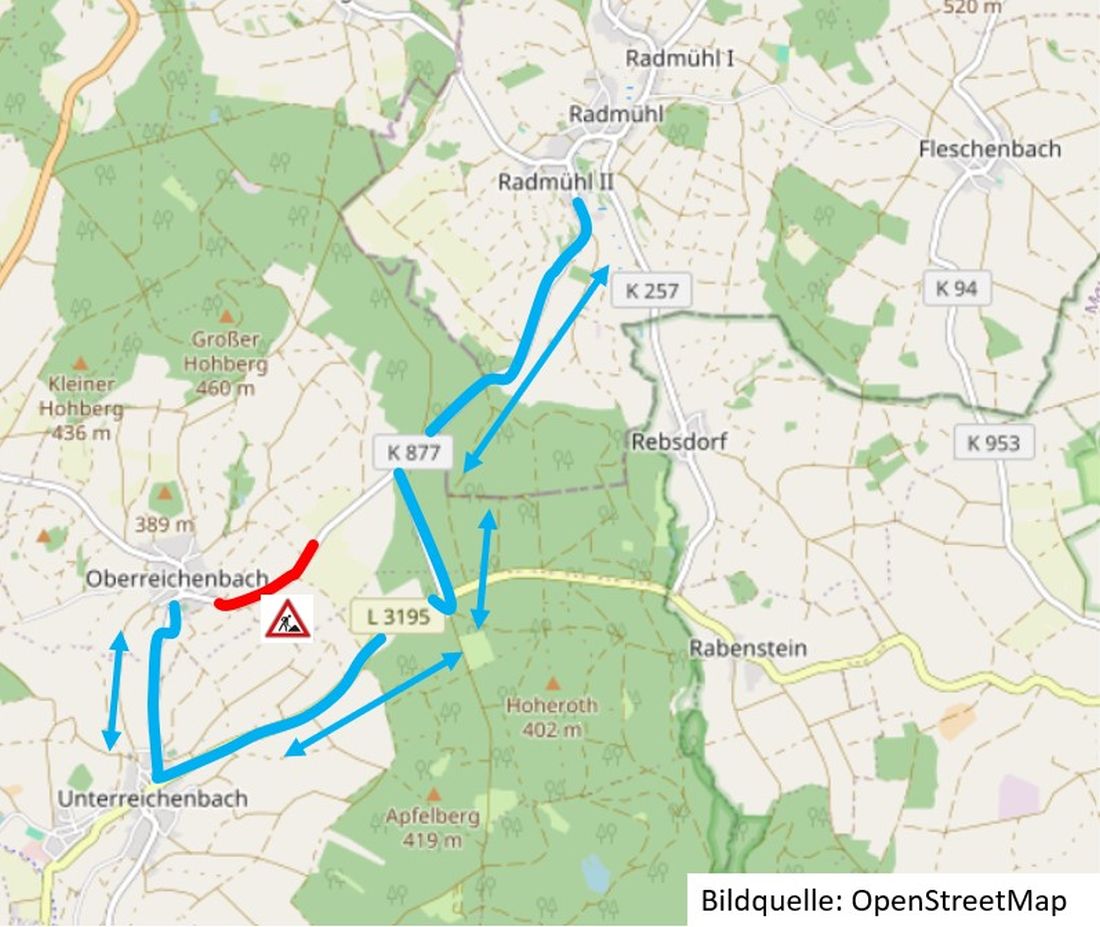 Die Kreisstraße 877 zwischen Birstein/Oberreichenbach und Freiensteinau/Radmühl muss kurzfristig bereits ab Montag, 19.05.2025, für den Verkehr voll gesperrt werden. Die Sperrung soll voraussichtlich im Laufe des späten Mittwochnachmittags, 21.05.2025, wieder aufgehoben werden.