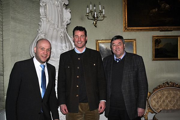 Foto: Staatssekretär Ingmar Jung, Alexander Prinz von Isenburg und Dr. Rolf Müller (von links nach rechts) bei der Besichtigung des Birsteiner Schlosses.