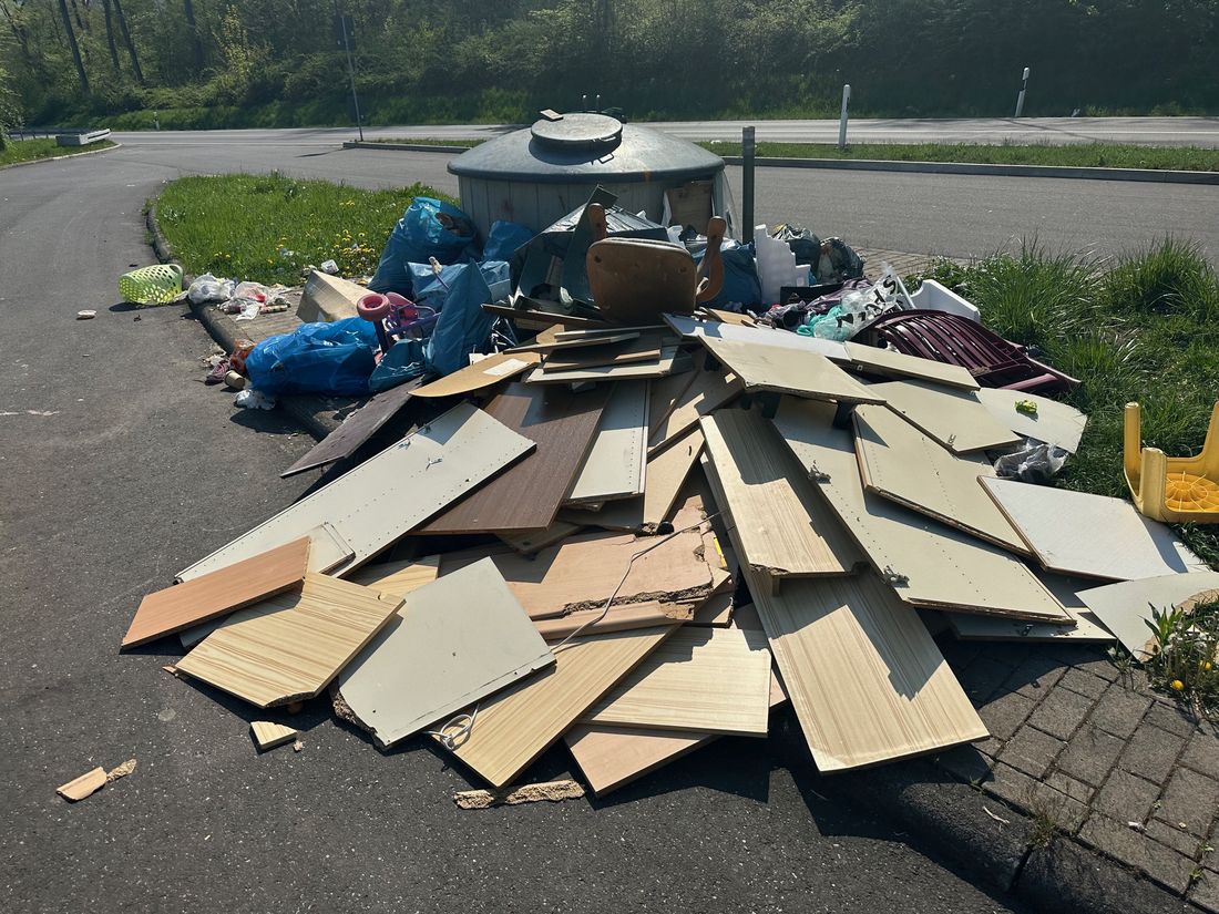 Der Parkplatz an der Bundesstraße 276 zwischen Brachttal und Birstein ähnelte über Ostern eher eine Mülldeponie. Alles andere als Reiseabfall war zu bezeichnen, was sich dort rund um den eigentlich schon großen Müllcontainer befand. Neben einem Kinderfahrrad, Gartenmöbeln und einigen Müllsäcken wurde offenbar auch ein kompletter Schrank entsorgt.
