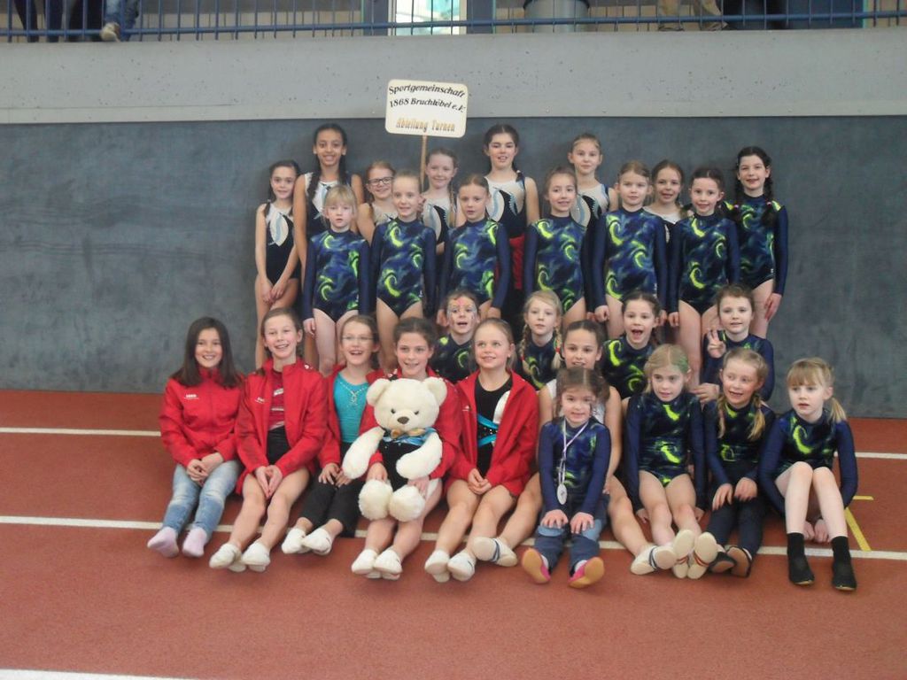 Beim 30. Hallenkinderturnfest in Hanau nahm die SG Bruchköbel mit einer großen Gruppe von 29 Turnerinnen teil.