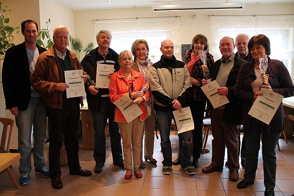 Sowohl drinnen, als auch draußen entwickelten sich gemütliche Gespräche. Gemeinsam lauschten dann ungefähr 60 Mitglieder der Ansprache des 1. Vorsitzenden, Hans Recek, der gemeinsam mit dem 2. Vorsitzenden, Stefan Oßwald, die neue Sommerspielsaison offiziell einläutete. Großer Aufmerksamkeit erfreute sich naturgemäß auch die Ehrung der teilweise bereits 45jährigen Vereinsmitglieder, deren Treue mit einem guten Wein belohnt wurde.