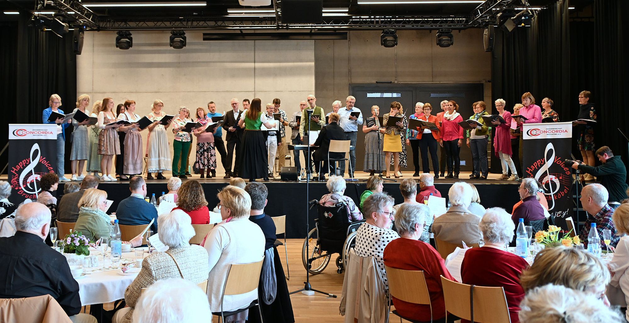 „Wir sind froh, dass wir dieses Event, das den Bruchköbeler Senioren, aber auch so manchem jüngeren Besucher jedes Jahr einen wunderbaren Nachmittag garantiert, jetzt hier im Stadthaus haben“, so Erster Stadtrat Oliver Blum (Grüne), der als Vertreter des Magistrats zusammen mit seiner Frau das Konzert besuchte. Auch Guido Rötzler, Bruchköbels Stadtverordnetenvorsteher, ließ es sich nicht nehmen, die Veranstaltung zu besuchen. Durch das Konzert führte dieses Jahr erstmals der Chorist Jürgen Frenke, der mit viel Witz und Einfühlungsvermögen das Publikum zum Lachen und zum Mitsingen brachte. „Das herzliche Feedback des Publikums hat mir dabei einen Riesenspaß bereitet“, so Frenke.