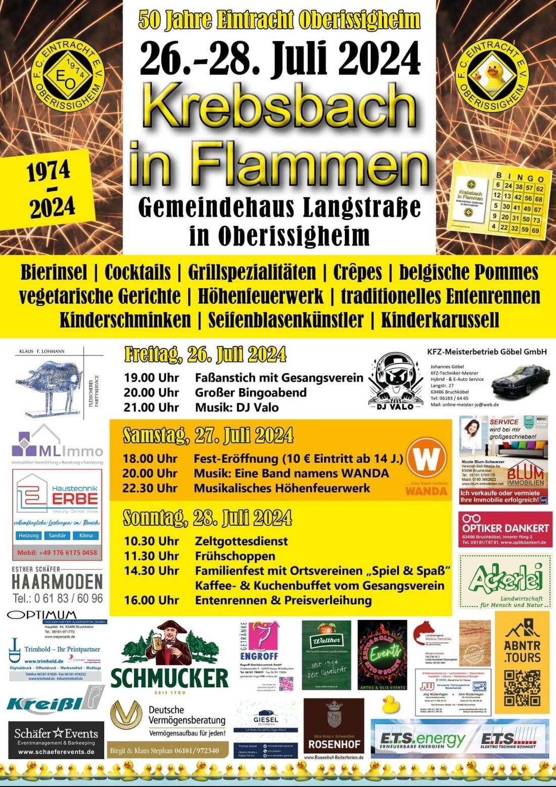 Der FC Eintracht Oberissigheim veranstaltet von Freitag, 26., bis Sonntag, 28. Juli, wieder das Fest „Krebsbach in Flammen“ rund um das Gemeindehaus an der Langstraße in Oberissigheim.