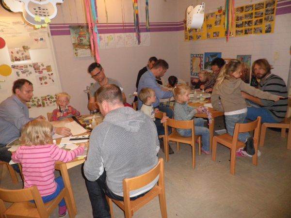 Die Väter und Kinder der Sternentigergruppe der Kita Sternenland in Bruchköbel/Roßdorf waren wieder einmal eingeladen mit ihren Kindern ihr feinmotorisches Geschick beim Basteln der Martinslaterne unter Beweis zu stellen.