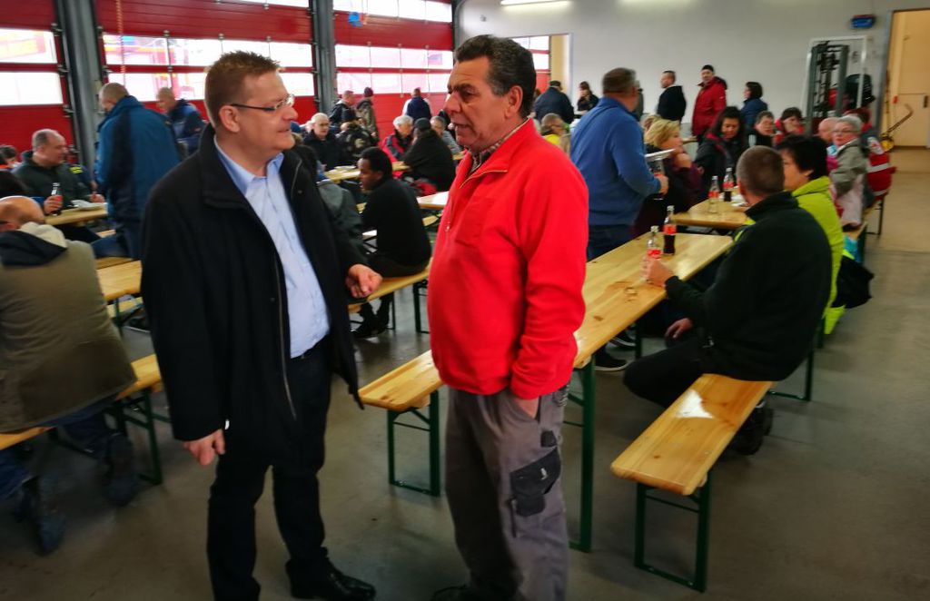 Nach getaner Arbeit versammelten sich die Vereine zum Aufwärmen und zum Stärken im Feuerwehrgerätehaus Rückingen, wo sie von der dortigen Feuerwehr mit Kartoffelsuppe, Rindwürsten und Brötchen, sowie Getränken versorgt wurden. Bürgermeister Stefan Erb ließ es sich nicht nehmen, ebenso ins Feuerwehrgerätehaus Rückingen zu kommen, um sich bei allen Teilnehmern persönlich für ihren Einsatz zu bedanken, da es auch nicht selbstverständlich ist, dass so viele Freiwillige ihr Wochenende opfern und mit Müllsäcken bewaffnet ihre Zeit in Wald und Feld verbringen.