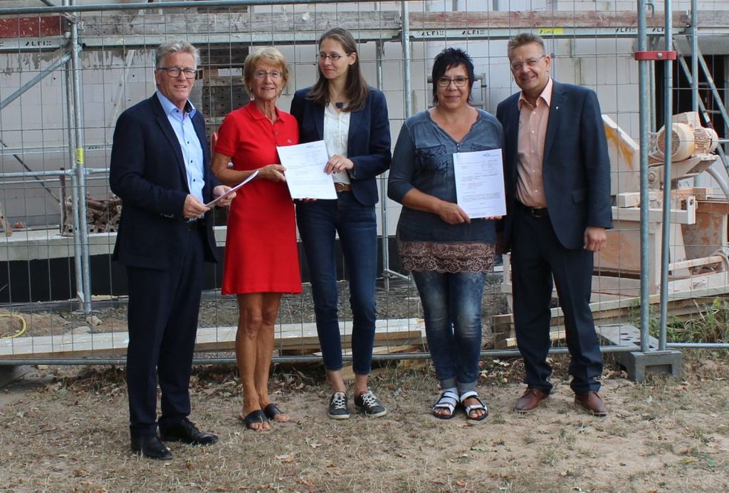 Foto: Kreisbeigeordneter Winfried Ottmann übergab die Förderbescheide für die Umbaumaßnahmen in den Kitas der Stadt Erlensee. V.l.: Winfried Ottmann, Ursula Grunwald, Dorothee Minnameyer (Fachbereichsleiterin Hochbau, Stadt Erlensee), Uta Leonhardt-Krause und Stefan Erb.