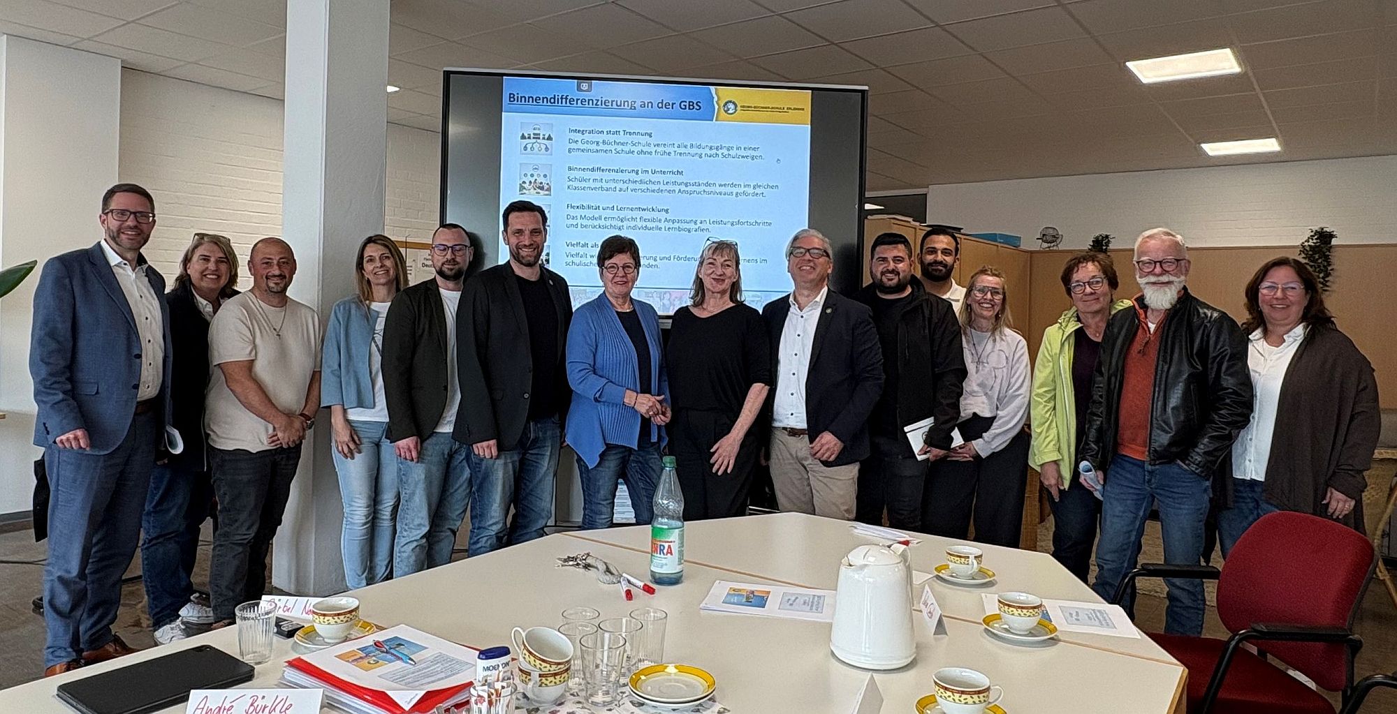 Mitglieder der SPD-Kreistagsfraktion besuchten gemeinsam mit Landrat Thorsten Stolz (SPD) und Vertreterinnen und Vertretern der SPD-Erlensee die Georg-Büchner-Schule (GBS) in Erlensee, um sich mit der Schulleitung über die im Main-Kinzig-Kreis einmalige konzeptionelle Ausrichtung der Schule auszutauschen.