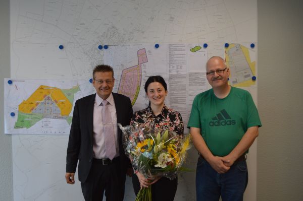 Foto (von links): Bürgermeister Stefan Erb, Yasemin Bülbül, Fachbereichsleiter Reiner Mayer.